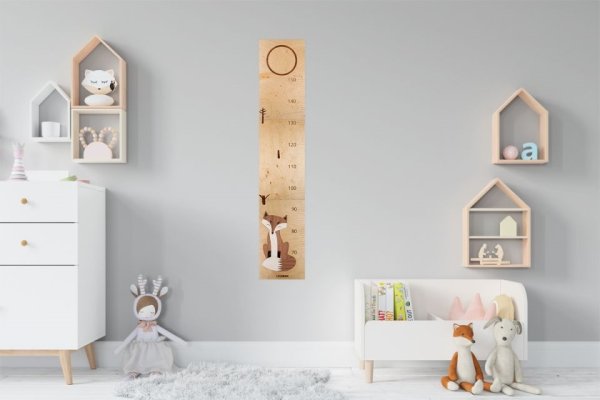 S touto originálně navrženou dřevěnou dekorací v podobě nástěnného metru je ještě zábavnější sledovat růst Vašich nejmenších členů rodiny. Tento dřevěný metr s motivem lišky Elišky se skládá ze tří částí, které se snadno a pevně připevní na zeď. Upevnit dětský metr lze pomocí oboustranné lepící pásky. Přesná měřítka na metru jsou snadno čitelná, umožňující přesné měření a zaznamenání každého centimetru růstu. Hlavní vlastnosti: dřevěná dekorace na stěnupoužité dřevo: bříza, javor, mahagonmotiv liška Eliška vhodný do dětského pokojíčkuměřící stupnice od 70 do 150 cmvyrobeno v ČR