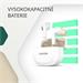 Vysokokapacitní baterie zajišťuje delší výdrž a zároveň umožní rychlé nabíjení. Samotná sluchátka nabijete za pouhých 50 minut, nabíjecí pouzdro za 2 hodiny.
