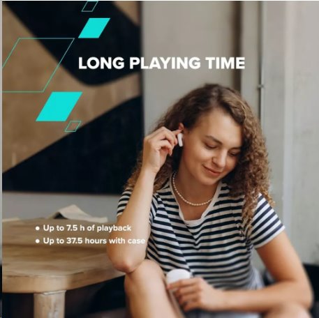 Technologie BT 5.3 zajišťuje vyšší provozní dobu sluchátek. S pouhými dvěma hodinami plného nabití můžete přehrávat hudbu a telefonovat 7,5 hodiny. S pouzdrem lze sluchátka používat až 37,5 hodiny.