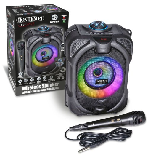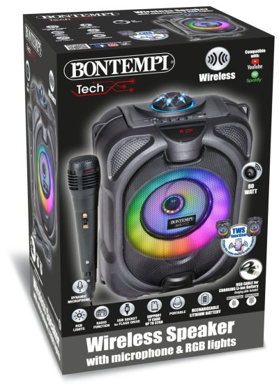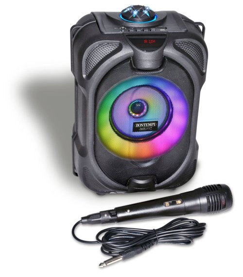 Multifunkční bezdrátový reproduktor ideální pro karaoke, oslavy i domácí zábavu. Součástí je dynamický mikrofon pro zpěv a mluvené slovo. Barevné světelné efekty vytvářejí skvělou atmosféru a integrovaný displej zobrazuje informace o přehrávání nebo režimu zařízení. Reproduktor se snadno připojuje přes Bluetooth, nabízí kvalitní zvuk a je vhodný pro vnitřní i venkovní použití. Perfektní volba pro celou rodinu. Nabíjecí kabel pro lithiové baterie typ C součástí.