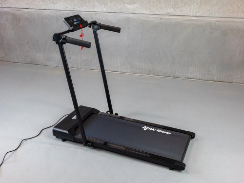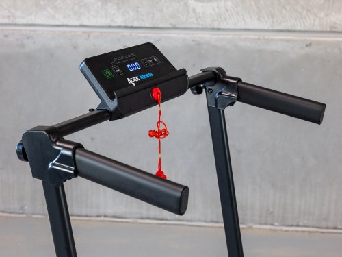 Na pásu najdete krátký držák s měkkými rukojeťmi, který zajistí potřebnou stabilitu při pohybu. Rukojeti v sobě mají integrovaný snímač tepové frekvence, díky kterému můžete zaznamenávat svůj výkon. V případě nutnosti vám rychlobrzda umožní pás okamžitě vypnout. Stačí vysunout bezpečnostní klíč a pás se zastaví. Velkou výhodou pásu je jeho skladnost. Je široký 13 cm a váží 21 kg. Snadno ho složíte a umístíte třeba za skříň.
