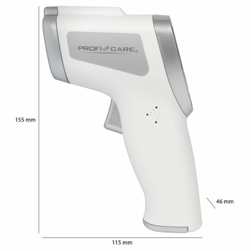 Bezkontaktní hygienický teploměr pro rychlé změření teploty miminek, malých dětí, dospělých, ale také ploch. Je vybaven duálním bezkontaktním systémem, který je přepínatelný, pro měření tělesné teploty, ale také teploty ploch (teplota vody ve vaně, teplota dětské stravy). Změřená teplota se zobrazuje na snadno čitelném LCD displeji, který je podsvícený a usnadňuje tak měření ve tmě. Výsledek měření se zobrazí přibližně za 1 vteřinu. Na konci měření také zazní akustický signál, který lze vypnout. Po 10 vteřinách se teploměr automaticky vypne pro šetření baterií. LCD displej zobrazí včetně změřené teploty také barvu, a to podle změřené teploty. Při teplotě do 37,5 °C se zobrazí zelená barva, při teplotě 37,6–37,9 °C se zobrazí oranžová barva a při teplotě 38–42,5 °C se zobrazí červená barva. Rozsah teploty pro měření ploch je 0–100 °C. Měřit lze v °C a ve °F. V teploměru lze uložit až 32 měření a upozorňuje také na potřebu výměny baterií. Napájení je 2× 1,5 V AA baterie, které však nejsou součástí balení. Certifikováno CE 0197/TÜV Rheiland, MDD/93/42/ECC, ISO 13485.