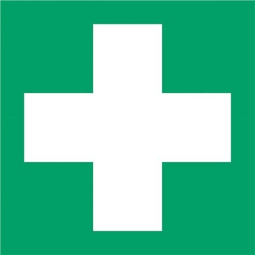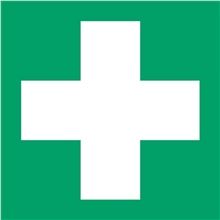 Bezpečnostní samolepicí výstražné a informační etikety ze silného vinylového materiálu s permanentním lepidlem Piktogram znázorňující "První pomoc" Rozměry: 20 x 20 cm