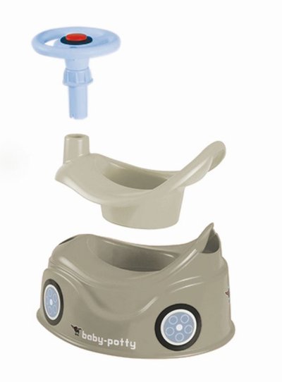 Nočník Big s volantem a s klaksonem. Vyšší opěrka zad, široká, stabilní základna. Barva šedá. Rozměry: 43 x 28 x 31 cm.
