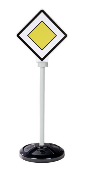 Set 3 dopravních značek s 5 originálními symboly, potisknutými oboustranně - hlavní silnice/konec hlavní silnice, stop/stop, parkování/přechod pro chodce. Dopravní značky jsou odolné vůči UV záření a neztrácejí barvu, se stojanem. Výška značky 69 cm. Celková váha 0,8 kg.