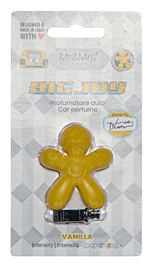 Vůně do auta Big Joy Vanilla Yellow provoní váš vůz až po dobu 2 měsíců. Bojuje s nepříjemnými pachy, jako je například kouř z cigaret, a příjemně osvěží vzduch. Panáčka stačí připevnit na ventilátor klimatizace díky úchytu, který je součástí balení.