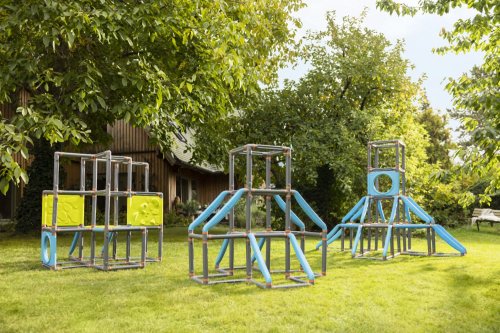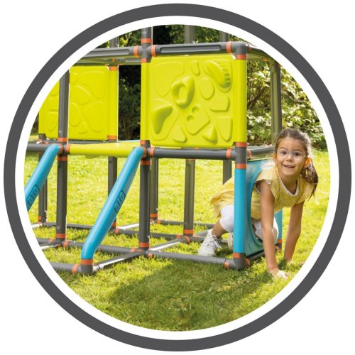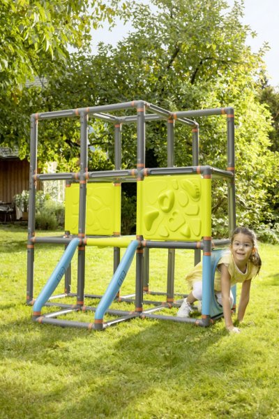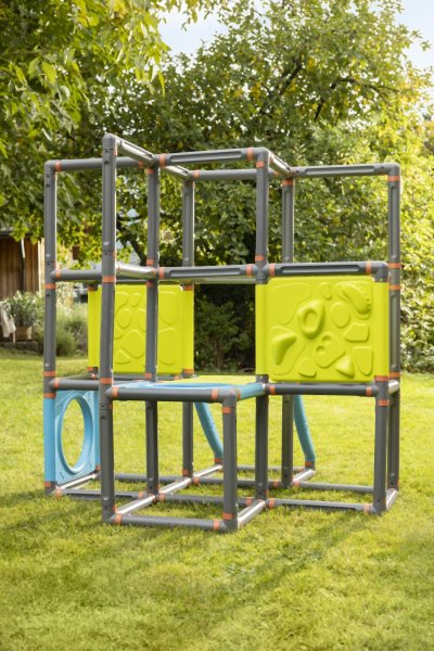 Robustní prolézačka na venkovní použití, obsahuje 246 částí, fixační "U" kolíky do země pro lepší stabilitu. Jednoduchá montáž bez použití nářadí. Několik možností sestavení. Bezpečné, spoje rozloží pouze dospělá osoba. Ochrana proti UV záření. Max. nosnost 70 kg. Vyrobeno v Německu. Rozměry výrobku 140x140x140 cm.