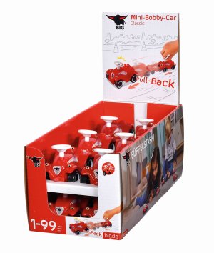 Kvalitní plastový miniaturní model autíčka Big Mini Bobby Car Classic na zpětný chod. V červeném provedení. Karoserie, ráfky, volant i světla odpovídají originálu. 12 kusů v displeji. Délka 7 cm. Rozměry: 7 x 45,5 x 5 cm.