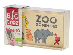 Big Tree domino dřevěné zvířátka 15,5x9 x4 cm 28 ks v dřevěné krabičce ve fólii