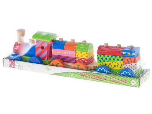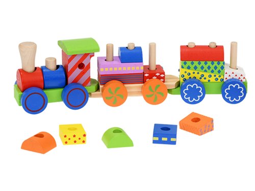 S dřevěným vláčkem si vyhrají zejména děti od jednoho roku. Skládání kostek rozvíjíj jemnou motoriku a rozmanitá barevnost této hračky děti nikdy neomrzí.