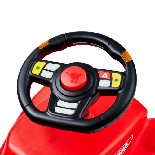 Multifunkční volant se světelnými a zvukovými efekty, voděodolný. Kompatibilní se všemi Bobby Car odrážedly od roku 2010 (Classic, Neo, Next). 8 různých zvuků, funkce: ukazatel odbočení vlevo/vpravo (LED světlo) + přísl. zvuk, zvuk zamykání auta, klakson, zvuk vytáčení tel. čísla a vyzvánění, zvuk startování a samozřejmě rádio.