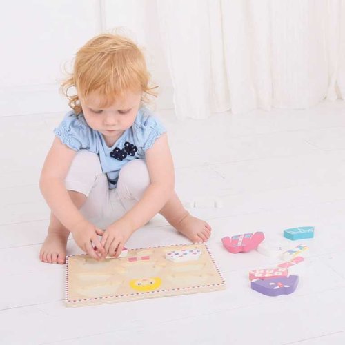 Tento komplet s deseti výměnnými díly si vaše deti určitě zamilují. S touto nádherně zábavnou Dressing Girl Puzzle můžou zaměňovat oblečení, jak jim to jejich představivost dovolí. Každý kus je velmi pestře zbarvený a jednoduchý pro práci malých prstíků vašeho dítěte. Pro toto vkládací puzzle je charakteristická tloušťka použitého materiálu - dřeva 2 cm. Dětem to zjednodušuje úchop dílků a bezpečnost hračky. Hlavní vlastnosti: součástí balení je vše dle obrázkupomáhá rozvíjet zručnost, dovednost a koncentracivyrobeno z vysoce kvalitních, zodpovědně získaných materiálůsplňuje aktuální evropské bezpečnostní normy10 dílků puzzle