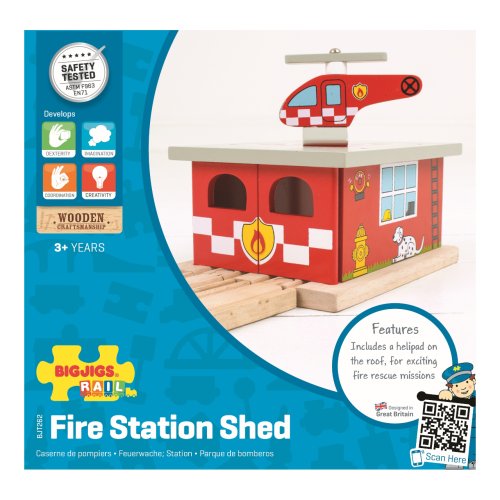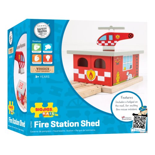 Tohle depo je ideální místo odpočinku pro hasičský a záchranný vlak. Dodáváno s vrtulníkem. Hlavní vlastnosti: Vláčkodráhy a jejich příslušenství značky Bigjigs Rail je možno kombinovat se všemi dalšími dřevěnými vláčkodráhami na trhu.Vyrobeno z kvalitních a zodpovědně získaných přírodních materiálů.Odpovídá současným evropským bezpečnostním normám.Podporuje představivost, obratnost a koordinaci.