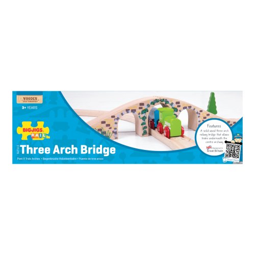 Potřebujete-li překonat vlakem řeku, silnici nebo křížení s jinou dráhou, pak budete potřebovat právě tento troj-obloukový most. S detaily kamenných cihel po jeho stranách a kvalitní povrchovou úpravou je tento most ceněným doplňkem každé dřevěné vláčkodráhy.Součástí balení je vše dle obrázku. Hlavní vlastnosti: vláčkodráhy a jejich příslušenství značky Bigjigs Rail je možno kombinovat se všemi dalšími dřevěnými vláčkodráhami na trhuvyrobeno z kvalitních a zodpovědně získaných přírodních materiálůodpovídá současným evropským bezpečnostním normámpodporuje představivost, obratnost a koordinaci