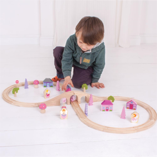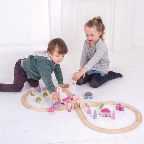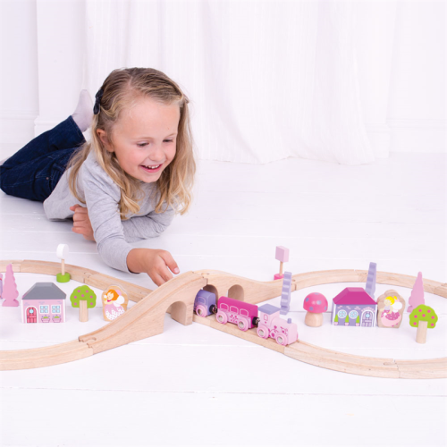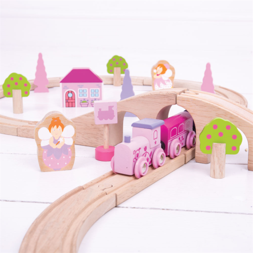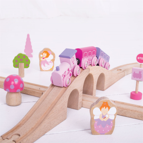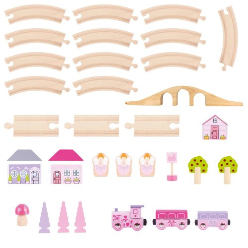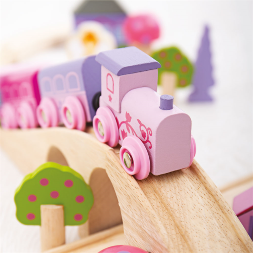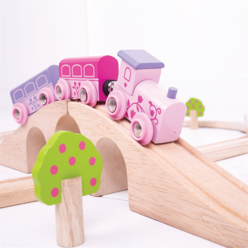 Originální vláčkodráha pro malé slečny s veškerým příslušenstvím v dívčích barvách.Hlavní vlastnosti: vláčkodráhy a jejich příslušenství značky Bigjigs Rail je možno kombinovat se všemi dalšími dřevěnými vláčkodráhami na trhuvyrobeno z kvalitních a zodpovědně získaných přírodních materiálůodpovídá současným evropským bezpečnostním normámpodporuje představivost, obratnost a koordinaci