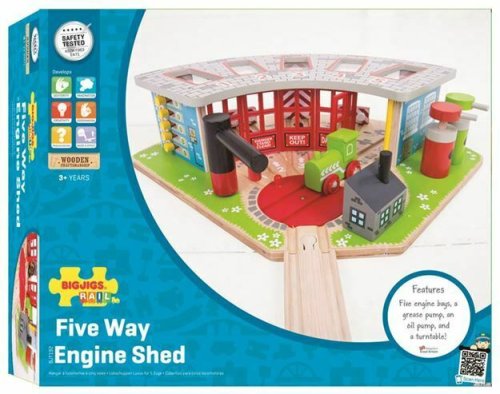 Žádná železnice by nebyla úplná bez těchto garáží pro 5 různých vlaků. S dvířky a dvěma sudy na olej lze pohybovat. Balení obsahuje funkční točnu, otevírací dvířka a dvě čerpadla.Hlavní vlastnosti: vláčkodráhy a jejich příslušenství značky Bigjigs Rail je možno kombinovat se všemi dalšími dřevěnými vláčkodráhami na trhuvyrobeno z kvalitních a zodpovědně získaných přírodních materiálůodpovídá současným evropským bezpečnostním normámpodporuje představivost, obratnost a koordinaci
