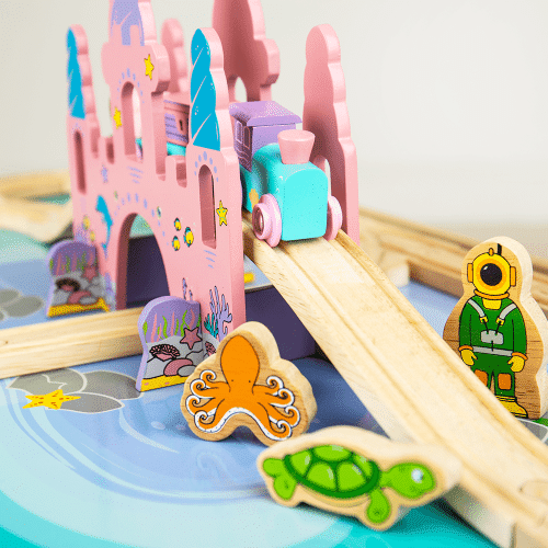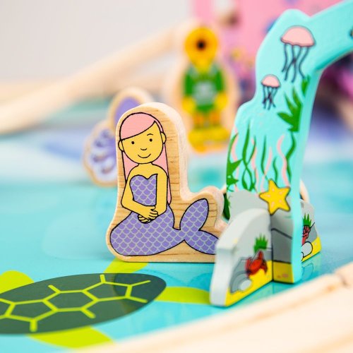 Ponořte se do představivé hry vodního světa s touto stolní vláčkodráhou. Pevný dřevěný stůl s velmi kvalitními dílky vláčkodráhy a barevnou lokomotivou s 2 vagónky. Mořský svět by se neobešel bez truhlice s pokladem, figurek mořských pan, mušlí a dalších mořských živočichů. Stůl je dost velký, takže si u něj může hrát více dětí najednou, to znamená více zábavy! Podpoří děti v komunikaci a sociálních dovednostech. Hlavní vlastnosti: Rozvíjí představivost, zručnost, koordinaci. Jednoduchá montáž. Vláčkodráhy a jejich příslušenství značky Bigjigs Rail je možno kombinovat se všemi dalšími dřevěnými vláčkodráhami na trhu. Vyrobeno z kvalitních materiálů ze zodpovědných zdrojů. Splňuje současné evropské bezpečnostní standardy.