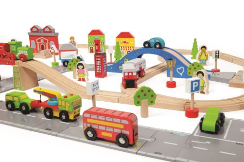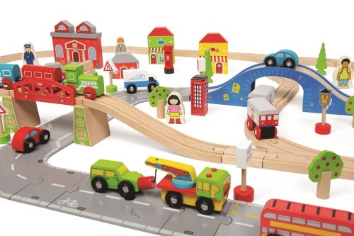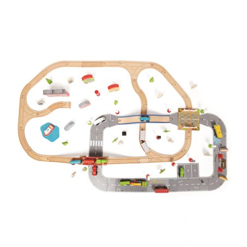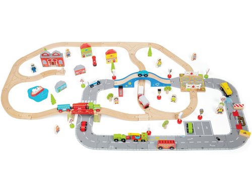 Užijte si najednou vláčkodráhu a autodráhu! Tento rozsáhlý dřevěný set nabízí prostor pro hru s představivostí, obsahuje hodně doplňků, které upoutají pozornost dětí. Vlaky a auta se potkají na křižovatce železničního přejezdu, cestující čekají ve vlakové stanici, set má dokonce loď, která pasažéry přenese přes jezero! Propojuje koleje a cesty a tak si děti mají pořád s čím hrát. K rozšíření setu je možno dokoupit další doplňky. Hlavní vlastnosti: vláčkodráhy a jejich příslušenství značky Bigjigs Rail je možné kombinovat se všemi dalšími dřevěnými vláčkodráhami na trhuvyrobeno z kvalitních a zodpovědně získaných přírodních materiálůodpovídá současným evropským bezpečnostním normámpodporuje představivost, obratnost a koordinaci