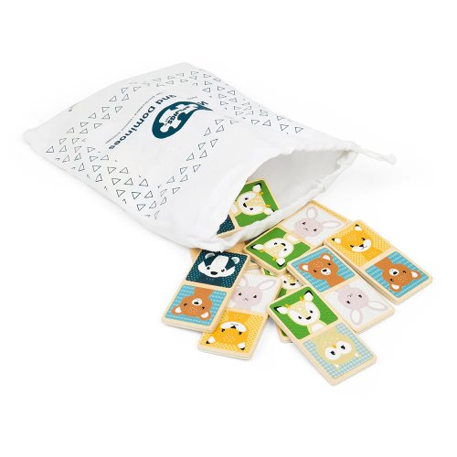 Krásné domino s lesními zvířátky má 28 dílků, které mají velikost tak akorát pro dětské ruce. Ideální hra na cesty, která děti nadchne nejen veselou ilustrací, je zabalená v bavlněném pytlíku. Děti se naučí trpělivosti a všemu dalšímu, co patří ke hře ve více lidech.Vyrobeno z eticky získaného a udržitelného dřeva s certifikací FSC®, malováno netoxickými barvami a laky. Odpovídá evropským bezpečnostním standardům. Hlavní vlastnosti: dětské domino28 dílků s ilustracemi zvířat1 bavlněný pytlíkvyrobeno z FSC® certifikovaného dřevavhodné od 2 let Jak hrát domino:Dílky domina položte na stůl nebo jinou hrací plochu lícem dolů a zamíchejte. Každý hráč si vezme 6 dílků domina (pokud je více než 3 hráčů, každý si vezme 6 dílků domina), které nesmí vidět nikdo z protihráčů! Ostatní domina dejte stranou na hromádku.Začínající hráč položí jedno domino obrázkem nahoru na hrací plochu. Druhý hráč musí položit navazující domino. Pokud žádný z jeho dílků nelze navázat na již položené domino, přibírá si tento hráč domino z hromádky. Na řadě je další hráč. Takto se hráči střídají na řadě, dokud se jeden z nich nezbaví všech dílků domina. Tento hráč vítězí a hra je u konce. Značka a certifikát FSC® (Forest Stewardship Council) zaručuje, že dřevo, ze kterého byl produkt vyroben, nebylo vytěženo nelegálně a pochází z lesů obhospodařovaných šetrným či přírodě blízkým způsobem, ve kterém jsou dodržovány přísné environmentální a sociální požadavky. Značka FSC® na výrobku znamená, že svým nákupem pomáháte chránit lesy a podporujete šetrné, odpovědné či přírodě blízké hospodaření, díky kterému jsou naše lesy stabilnější, zdravější, mají přirozenou druhovou skladbu a lépe odolávají negativním následkům klimatických změn.