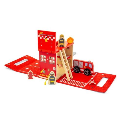 Vydejte se na záchrannou misi kdykoli a kdekoli! Tato kompaktní hasičská stanice je součástí kolekce přenosných herních sad a díky skládacím plstěným bokům se snadno sbalí i přenáší. Sada nabízí vše, co malý hasič potřebuje pro dobrodružnou hru na cestách. Děti si mohou přehrávat napínavé záchranné akce s hasičským autem, dvěma figurkami hasičů a dalšími doplňky. Dřevěná stanice zároveň slouží jako praktické úložný box i herní prostor. Nechybí ani žebřík, hadice, bezpečnostní kužel a požární hydrant, které rozšiřují možnosti kreativního vyprávění. Hra podporuje rozvoj fantazie, komunikačních dovedností i sociální interakce při společném hraní. Díky kompaktnímu provedení, snadnému úklidu a pevné rukojeti je sada ideální na cesty, dovolenou i návštěvy. Vyrobeno z kvalitního FSC® certifikovaného dřeva z udržitelných zdrojů. Sada je odolná, bezpečná a dodává se ve 100% recyklovatelném balení bez plastů – skvělá volba pro ekologicky smýšlející rodiny. Hlavní vlastnosti: přenosná dřevěná herní sada se skládacími plstěnými bokyobsahuje 8 dílů: hasičské auto, 2 figurky hasičů, žebřík, hadice, kužel a hydrantdřevěná stanice slouží i jako úložný boxpraktická rukojeť pro snadné přenášenípodporuje kreativitu, fantazii a sociální dovednostivyrobeno z FSC® certifikovaného dřeva100% recyklovatelné balení bez plastůvhodné pro děti od 2 let Značka a certifikát FSC® (Forest Stewardship Council) zaručuje, že dřevo, ze kterého byl produkt vyroben, nebylo vytěženo nelegálně a pochází z lesů obhospodařovaných šetrným či přírodě blízkým způsobem, ve kterém jsou dodržovány přísné environmentální a sociální požadavky. Značka FSC® na výrobku znamená, že svým nákupem pomáháte chránit lesy a podporujete šetrné, odpovědné či přírodě blízké hospodaření, díky kterému jsou naše lesy stabilnější, zdravější, mají přirozenou druhovou skladbu a lépe odolávají negativním následkům klimatických změn.