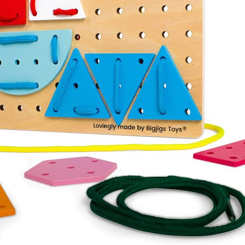 Dřevěná šněrovací hra fantastickým a zábavným způsobem rozvíjí jemnou motoriku, kreativitu a obratnost. Děti provlékají tkaničky skrz otvory na geometrických tvarech i základní desce, aby vytvořily nápaditý a veselý obrázek. Tvary obsahují řadu zářivých barev, které upoutají a pomáhají udržet pozornost. Vyrobeno z vysoce kvalitních materiálů z odpovědných zdrojů. Hlavní vlastnosti: 44 ks geometrických tvarů6 ks vysoce kvalitních tkaniček rozvíjí jemnou motoriku a kreativitu dětísplňuje všechny evropské bezpečnostní normy