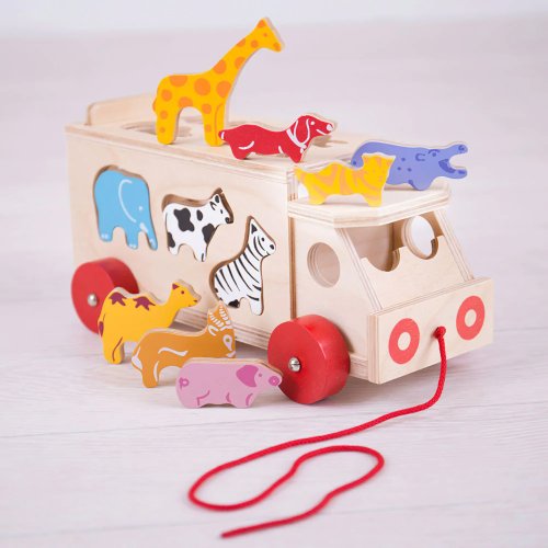 Roztřiďte tvary a naučte se vše o zvířatech. Vložte každé zvířátko do správného otvoru, zkontrolujte, zda jsou zadní dveře auta zavřené a táhnutím za šňůrku můžete vyjet. Tato pestrobarevná dřevěná zvířata lze naložit na nákladní vůz nebo je prostrčit pomocí speciálních otvorů. Hra pomáhá rozvíjet zručnost a koordinaci ruka-oko. Vyrobeno z vysoce kvalitních materiálů z odpovědných zdrojů. Vyhovuje současným evropským bezpečnostním normám. V balení 11 dílků. Hlavní vlastnosti: obsahuje 11 kusůrozvíjí zručnost a koordinaci