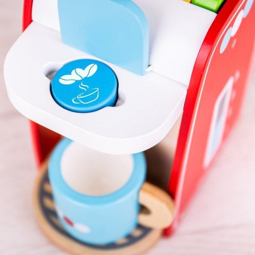 Kávovar pro vaše dítka - přesně takový, jaký používají máma s tátou. Ideální pro realistickou hru. Umístěte kávovou kapsli do kávovaru a otočte spínačem pro přípravu dokonalého šálku kávy. Tato realistická herní sada obsahuje 4 dřevěné kávové kapsle, kávovar, hrnek a krabici mléka. Podporuje kreativní a nápadité hraní rolí. Vyrobeno z vysoce kvalitních, zodpovědně získaných materiálů. Splňuje aktuální evropské bezpečnostní normy. Hlavní vlastnosti: ideální pro realistickou hrusada obsahuje 4 dřevěné kávové kapsle, kávovar, hrnek a krabici mlékapodporuje kreativitu