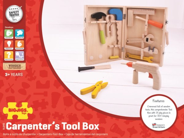 Tento kufřík plný nářadí potěší všechny mladé chlapce, kteří chtějí rozvíjet své řemeslné dovednosti. Hrací předměty zahrnují kladivo, kleště, vrtačku a klíče na matice. Nářadí má v kufříku své místo pro snadné uložení. Přispívá k rozvoji zručnosti a koordinaci. Hlavní vlastnosti: obsahuje 13 dílů včetně kufříkupraktický kufřík pro uloženívyrobeno z vysoce kvalitních materiálůvyhovuje současným evropským bezpečnostním normám