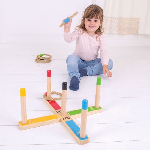 Tato klasická hra dovedností a přesnosti podpoří soutěživost v těch nejmenších, když se pokoušejí přehodit lana přes barevné tyče a dosáhnout tak nejvyššího skóre. Každé lano je barevně sladěné s jednou tyčí. Hrajte jednotlivě nebo s rodinou a přáteli, uvnitř i venku. Hlavní vlastnosti: pomáhá rozvíjet zručnost a koordinaci a zlepšuje matematické dovednostivyrobeno z vysoce kvalitních, zodpovědně dodávaných materiálůodpovídá současným evropským bezpečnostním normám
