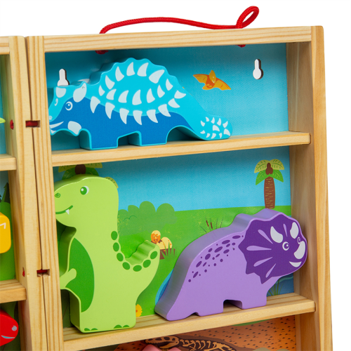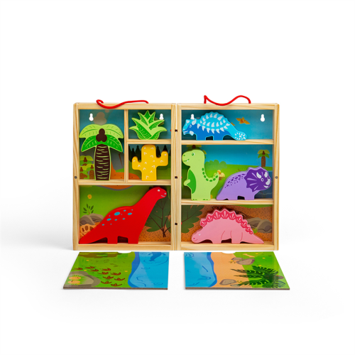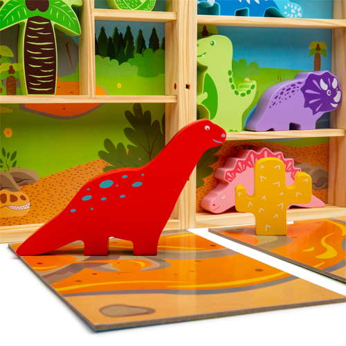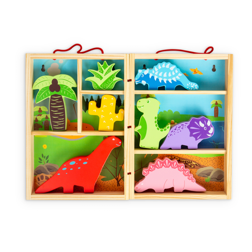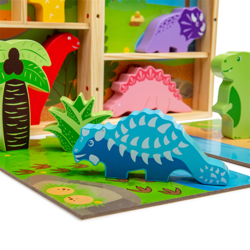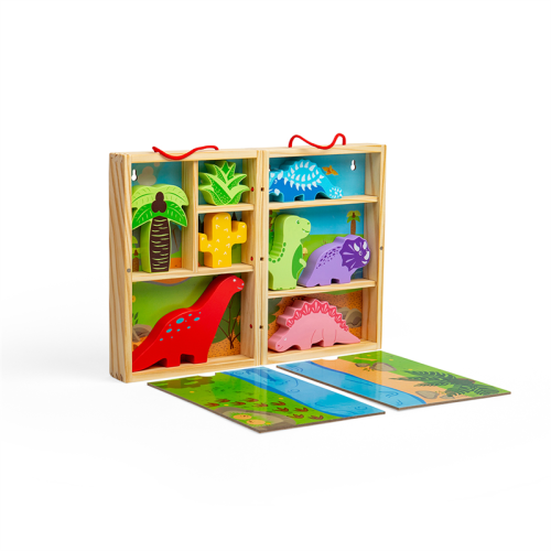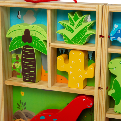 Přenosná krabička stylizovaná do světa dinosaurů, kterou sebou můžete vzít kamkoli. Děti od 18 měsíců můžou pomocí této hračky objevovat starý svět plný dinosaurů. Podporuje kreativitu a představivost. Hladké robustní hrací figurky mají ideální velikost pro malé ručičky k uchopení, zkoumání a výměně. Hlavní vlastnosti: přenosnost, ideální na cestovánívyrobeno ze dřevamasivní kouskyvhodné již od 18 měsícůobsahuje hrací krabici, dinosaury a rozkládací podložku na hraní, kaktus, aloe vera, palmu