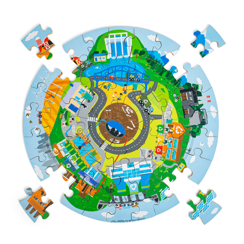 Kulaté puzzle s tématikou recyklace. Ukáže dětem co znamená recyklovat a co vše můžeme udělat abychom pomohli našemu životnímu prostředí. Stavět ho můžou děti od tří let. Procvičí si přitom schopnost soustředění, fantazii a zjistí něco nového o recykaci. Hlavni vlastnosti: vhodné od 3 letkrásné barevné zpracovánínaučí děti něco o recyklaci