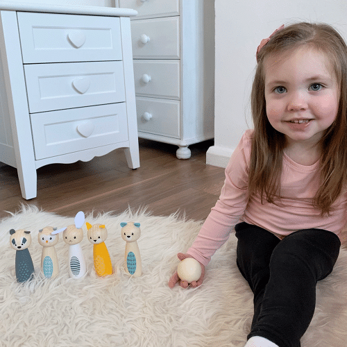 Strike! Kuželková párty v lese s partou přátelských zvířátek. Tyto pestrobarevné kuželky z certifikovaného FSC dřeva jen čekají, až je shodíte, zvednete a opět trefíte koulí! Zvířecí hračka dětem pomůže s rozvojem koordinace ruka-oko a také jemné motoriky. Kuželky také seznámí děti se základními počty. Dřevěná hračka ze 100% FSC certifikovaných a udržitelných materiálů. Vysoká kvalita, dřevo z etických zdrojů, barvy bezpečné pro děti – toto vše přidává hračce na životnosti. Hlavní vlastnosti: 100% FSC® dřevo1 dřevěná koule, 6 zvířecích kuželek – sova, jezevec, jelen, kočka, medvěd, králíkmotorická hračka Značka a certifikát FSC® (Forest Stewardship Council) zaručuje, že dřevo, ze kterého byl produkt vyroben, nebylo vytěženo nelegálně a pochází z lesů obhospodařovaných šetrným či přírodě blízkým způsobem, ve kterém jsou dodržovány přísné environmentální a sociální požadavky. Značka FSC® na výrobku znamená, že svým nákupem pomáháte chránit lesy a podporujete šetrné, odpovědné či přírodě blízké hospodaření, díky kterému jsou naše lesy stabilnější, zdravější, mají přirozenou druhovou skladbu a lépe odolávají negativním následkům klimatických změn.