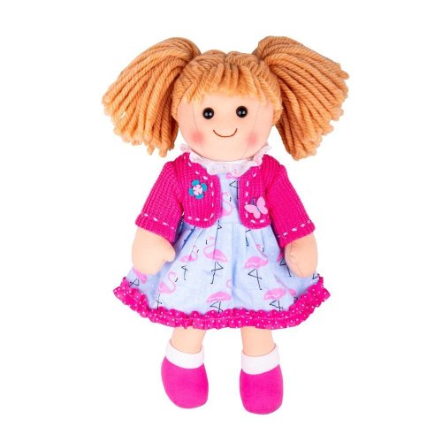 Seznamte se s Maggie! Tato měkká a mazlivá látková panenka jen čeká na lásku a přátelství svého nového nejlepšího přítele či přítelkyně. Její krásný outfit se skládá z modrých šatů se vzorem růžových plameňáků a růžového bolerka. Svým milým úsměvem si jistě získá srdce dítěte na první pohled. Vyrobeno z kvalitních materiálů z odpovědných zdrojů. Odpovídá evropské bezpečnostní normě. Hlavní vlastnosti: bezpečné měkké tělíčkohra s panenkou rozvíjí jemnou motoriku a schopnost pomáhat, pečovatk panence Bigjigs Toys lze dokupovat oblečení v příslušné velikostivhodné již od narozeníodpovídá současným evropským bezpečnostním normám