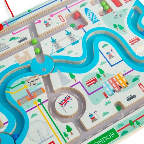 Vydejte se na projížďku rušnými ulicemi Londýna s magnetickým bludištěm! Pomocí červeného magnetického pera mohou děti vést 15 magnetických kuliček bludištěm. Poznají ikonické památky, jako je Buckinghamský palác, London Eye a Tower Bridge, nebo se mohou vydat na projížďku po řece Temži a otáčením magnetických koleček přepínat, kudy budou pokračovat dál. Každé otočení kolečka a výběr další cesty pomůže dětem pracovat na jejich schopnostech řešit problémy a dostat se do požadovaného cíle. Použití magnetického pera také zlepší zručnost a koordinaci ruka-oko a soustředění. Magnetické bludiště je vyrobeno z prvotřídního a udržitelného dřeva s certifikací FSC® a nabarveno netoxickými barvami a laky. Splňuje aktuální evropské bezpečnostní normy. Hlavní vlastnosti: zlepšuje jemnou motoriku a koordinaci ruka-okoučí děti řešit problémyvyrobeno ze dřeva s certifikací FSC®vhodné od 3 let věku Značka a certifikát FSC® (Forest Stewardship Council) zaručuje, že dřevo, ze kterého byl produkt vyroben, nebylo vytěženo nelegálně a pochází z lesů obhospodařovaných šetrným či přírodě blízkým způsobem, ve kterém jsou dodržovány přísné environmentální a sociální požadavky. Značka FSC® na výrobku znamená, že svým nákupem pomáháte chránit lesy a podporujete šetrné, odpovědné či přírodě blízké hospodaření, díky kterému jsou naše lesy stabilnější, zdravější, mají přirozenou druhovou skladbu a lépe odolávají negativním následkům klimatických změn.