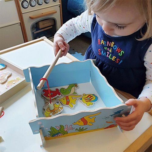 Popadněte svůj rybářský prut a užijte si tuto hru! Zjistěte, kdo dokáže zavěsit nejvíce ryb. Toto dřevěné akvárium obsahuje spoustu pestrobarevných tvorů včetně ryb, mořských koníků a krabů. Pomáhá rozvíjet obratnost a koordinaci. Vyrobeno z vysoce kvalitních materiálů z odpovědných zdrojů. Vyhovuje současným evropským bezpečnostním normám. Hlavní vlastnosti: rozvíjí zručnost a koordinaciobsahuje 12 mořských tvorů, 1 pevnou dřevěnou krabičku, konstrukci nádrže, 2 prutyvhodné pro děti od 3 let