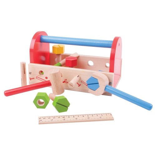 S klíčem, kladivem, maticemi a šrouby a dokonce i šroubovákem a pravítkem obsahuje tato přepravka na nářadí vše, co mladý kutil potřebuje, aby se mohl pustit do opravování! Robustní dřevěná přepravka na nářadí má vestavěnou rukojeť, takže si vaše ratolesti mohou vzít své nářadí s sebou na cesty! Pomáhá rozvíjet obratnost a koordinaci. Vyrobeno z vysoce kvalitních, zodpovědně získaných materiálů. Splňuje aktuální evropské bezpečnostní normy. Skládá se ze 16 hracích prvků. Hlavní vlastnosti: obsahuje 16 herních prvkůpomáhá rozvíjet obratnost a koordinacikompaktní rozměry