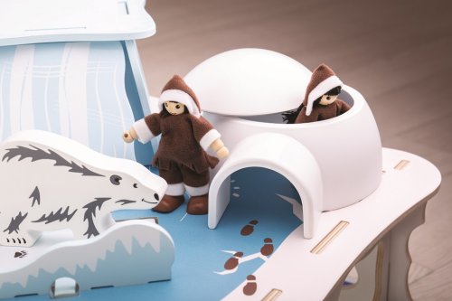 Přiveďte s tímto hracím setem k životu jednu z nejvíce dramatických a fascinujících krajin na Zemi. Tento perfektně detailní dřevěný polární ledovec obsahuje dva eskymáky, šest polárních zvířat, iglů s odnímatelnou střechou a padací dvěře. Eskymáci žijí ve svém iglů a sem tam si uloví nějakou rybu. Pozor na tenký led, jinak můžete propadnout padacími dveřmi! Rozvíjí slovní zásobu, vypravěčské dovednosti a zručnost. Vyrobeno z kvalitních materiálů z odpovědných zdrojů. Hlavní vlastnosti: polární ledovec s dvěmi eskymáky, šesti polárními zvířatyiglů s odnímatelnou střechou a padacími dveřmirozvíjí slovní zásobu, dovednost a zručnost