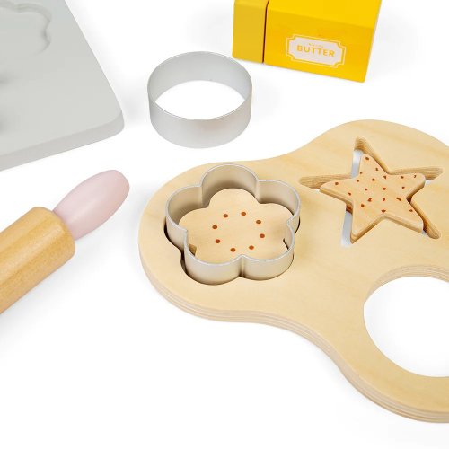 Připravit, pozor, péct! Upečte s dětmi představivé sušenky s jejich vlastním setem na pečení. V balení najdete dřevěný plech na pečení, váhu, vykrajovátka, váleček, mísu, krájecí máslo, vejce, mouku, cukr a mléko. Dětská sada na pečení děti naučí o bezpečnosti v kuchyni, také podpoří jejich představivost a kreativitu. Vyrobeno z eticky získaného a udržitelného dřeva s certifikací FSC®, malováno netoxickými barvami a laky. Odpovídá evropským bezpečnostním standardům. Obsah balení: 1 dřevěný plech na pečení, váha, 1 mísa, 1 váleček, těsto s vykrojenými sušenkami, 3 kovová vykrajovátka, krájecí máslo a vejce, balení mouky a cukru, lahev mléka. Hlavní vlastnosti: dětská sada na pečenívyrobeno z FSC® certifikovaného dřeva14,2 x 10 x 4 cmvhodné od 18 měsíců Značka a certifikát FSC® (Forest Stewardship Council) zaručuje, že dřevo, ze kterého byl produkt vyroben, nebylo vytěženo nelegálně a pochází z lesů obhospodařovaných šetrným či přírodě blízkým způsobem, ve kterém jsou dodržovány přísné environmentální a sociální požadavky. Značka FSC® na výrobku znamená, že svým nákupem pomáháte chránit lesy a podporujete šetrné, odpovědné či přírodě blízké hospodaření, díky kterému jsou naše lesy stabilnější, zdravější, mají přirozenou druhovou skladbu a lépe odolávají negativním následkům klimatických změn.