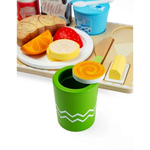 Tato dřevěná sada přináší dětem zábavnou hru na servírování a péči o ostatní. Díky bohatému výběru snídaňových dobrot mohou děti připravit a naservírovat kompletní snídani rodičům, sourozencům nebo kamarádům a ponořit se do světa každodenních situací.Sada obsahuje pestrou kombinaci jídla, nápojů i doplňků, které jsou přehledně uspořádány na dřevěném podnosu. Děti tak mohou trénovat skládání, servírování i organizaci jednotlivých prvků, což podporuje jemnou motoriku i koordinaci ruky a oka. Hra na role rozvíjí fantazii, komunikaci i sociální dovednosti. Děti si mohou vytvářet vlastní příběhy – od snídaně do postele až po malou kavárnu nebo pokojovou službu. Sada je navržena tak, aby dobře padla do dětských rukou a podporovala samostatnou i společnou hru. Vyrobena je z kvalitního FSC® certifikovaného dřeva, které zajišťuje odolnost i šetrnost k životnímu prostředí. Samozřejmostí je také splnění bezpečnostních standardů pro dětské hračky. Hlavní vlastnosti: rozsáhlá sada cca 28 dílůobsahuje snídaňové potraviny, nápoje i doplňky na servírovánísoučástí je dřevěný podnospodporuje kreativní a imaginativní hrurozvíjí jemnou motoriku a koordinacipodporuje sociální dovednosti a komunikacivhodné pro hru na domácnost, kavárnu i servírovánívyrobeno z FSC® certifikovaného dřeva Značka a certifikát FSC® (Forest Stewardship Council) zaručuje, že dřevo, ze kterého byl produkt vyroben, nebylo vytěženo nelegálně a pochází z lesů obhospodařovaných šetrným či přírodě blízkým způsobem, ve kterém jsou dodržovány přísné environmentální a sociální požadavky. Značka FSC® na výrobku znamená, že svým nákupem pomáháte chránit lesy a podporujete šetrné, odpovědné či přírodě blízké hospodaření, díky kterému jsou naše lesy stabilnější, zdravější, mají přirozenou druhovou skladbu a lépe odolávají negativním následkům klimatických změn.