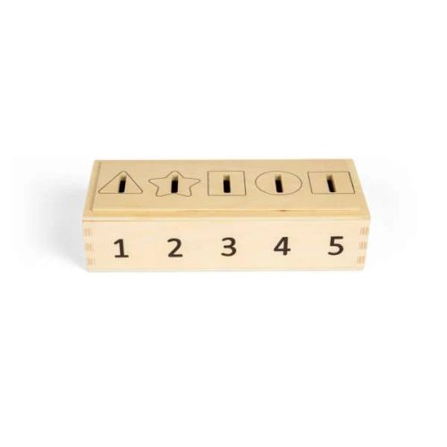 Pomocí jedinečné třídící krabičky s otvory mohou děti prozkoumávat čísla, barvy a tvary. Možností je několik. Děti třídí barvy nebo tvary podle označení na víku nebo tvary a čísla podle označení na bočních stěnách krabičky. Procvičují rozpoznávání čísel, barev a tvarů tím, že vhazují žetony podle barev, tvarů nebo čísel do příslušných otvorů. Žetony jsou různých barev, tvarů a jsou označeny čísly od 1 do 5. Třídění a rozpoznávání čísel, barev a tvarů rozvíjí smyslové vnímání, motorické dovednosti a koordinaci ruka-oko. Krabička je součástí vzdělávací řady Montessori hraček, je vyrobena z vysoce kvalitního a udržitelného dřeva s certifikací FSC® a opatřena netoxickými barvami a laky. Má odnímatelné oboustranné víko pro lepší manipulaci s tvary a vnitřní prostor je rozdělen přepážkami. Splňuje aktuální evropské bezpečnostní normy. Hlavní vlastnosti: dřevěná krabička, 27 žetonůodnímatelné víkovyrobeno ze dřeva s certifikací FSC®Montessori hračkazlepšuje motorické dovednosti a koordinaci ruka-okoučí rozpoznávat barvy, tvary a čísla od 12 měsíců věku Značka a certifikát FSC® (Forest Stewardship Council) zaručuje, že dřevo, ze kterého byl produkt vyroben, nebylo vytěženo nelegálně a pochází z lesů obhospodařovaných šetrným či přírodě blízkým způsobem, ve kterém jsou dodržovány přísné environmentální a sociální požadavky. Značka FSC® na výrobku znamená, že svým nákupem pomáháte chránit lesy a podporujete šetrné, odpovědné či přírodě blízké hospodaření, díky kterému jsou naše lesy stabilnější, zdravější, mají přirozenou druhovou skladbu a lépe odolávají negativním následkům klimatických změn.