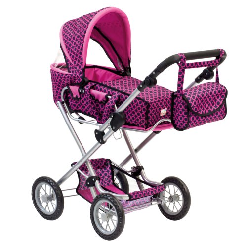 Velký stabilní kočárek pro panenky, s prostorným košíkem pod kočárkem. Lože kočárku snadno vyjmete a proměníte v praktickou tašku. Je navíc vybaven příruční taškou na držadlo. Pro větší pohodlí lze upravit výšku madla. Kovový rám je stříbrné barvy s držadlem z pěny. Lze jej složit pro snadné uskladnění a transport. Hlavní vlastnosti:pro panenky do 45 cmvyjímatelné ložepříruční taškastavitelná výška madlaprakticky skládací