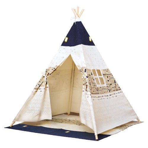 Malé týpí nejen ke hrám na indiány. Vhodné zejména k rozložení v interiéru, venkovnímu použití (za sucha) ovšem nic nebrání. Látková plachta stanu je vybavena okýnkem, podlážka je od plachty oddělená. Podpěry jsou vyrobeny z masivního dřeva a zabezpečují maximální stabilitu. Vybaveno návodem k sestavení. Hlavní vlastnosti: 12 dílů podpěr, plachta a podlážkavnitřní i venkovní použitísnadná montáž