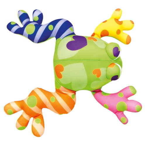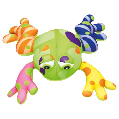 Roztomilá pestrobarevná žába vyrobená z odolného polyesteru, který lze snadno povrchově čistit. Výplň hračky tvoří polystyrénové kuličky, díky nimž je hračka měkká a poddajná. Hlavní vlastnosti:odolný materiálsnadná údržba