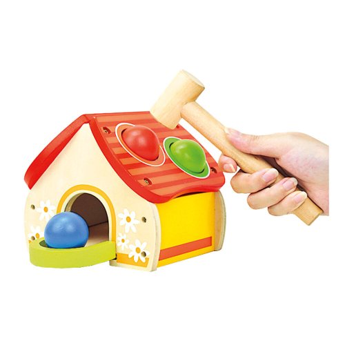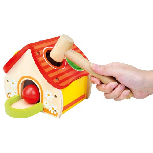 Pestrobarevná zábava, zatloukačka jako domeček s míčky. Míčky poslouží jako univerzální hračka a domeček se také neztratí při dalších hrách, zejména s figurkami. Zatloukačka rozvíjí koordinaci zraku a pohybu. Hračka je robustní, vyrobena ze silné překližky a masivního dřeva. Hlavní vlastnosti:domeček, kladívko a 4 různobarevné míčkyrozvíjí motorikurobustní dřevěné provedení
