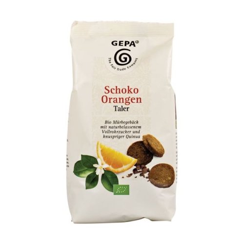 Jemné bio sušenky s kousky vysokoprocentní hořké čokolády a pomerančem, z mouky quinoa slazené třtinovým cukrem