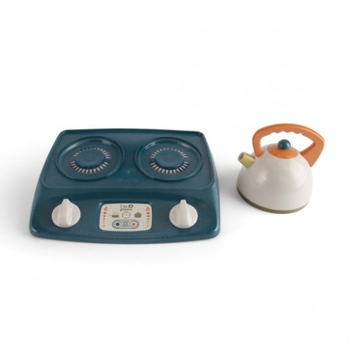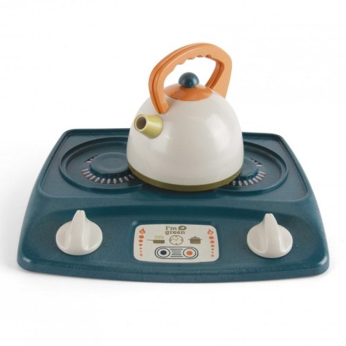 Sada sporáku a rychlovarné konvice v tlumených trendy barvách.