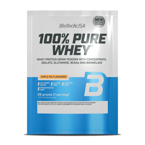 100% Pure Whey je vysoce kvalitní proteinový prášek s vysokou biologickou hodnotou. Je kombinací syrovátkového koncentrátu, syrovátkového izolátu a přidaných aminokyselin (L-glutamin, L-arginin a BCAA). Díky nízkému obsahu sacharidů a tuků je vhodný i v dietní fázi. Neobsahuje lepek, palmový olej, ani přidaný cukr. K dostání je v pestré škále příchutí. Přednosti: