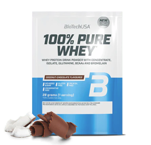 100% Pure Whey je vysoce kvalitní proteinový prášek s vysokou biologickou hodnotou. Je kombinací syrovátkového koncentrátu, syrovátkového izolátu a přidaných aminokyselin (L-glutamin, L-arginin a BCAA). Díky nízkému obsahu sacharidů a tuků je vhodný i v dietní fázi. Neobsahuje lepek, palmový olej, ani přidaný cukr. K dostání je v pestré škále příchutí. Přednosti: