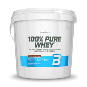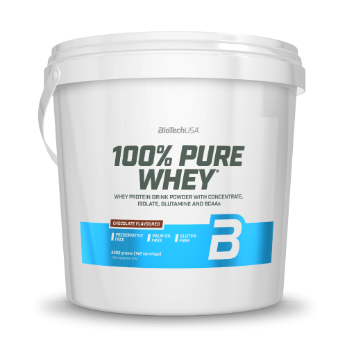 100% Pure Whey je vysoce kvalitní proteinový prášek s vysokou biologickou hodnotou. Je kombinací syrovátkového koncentrátu, syrovátkového izolátu a přidaných aminokyselin (L-glutamin, L-arginin a BCAA). Díky nízkému obsahu sacharidů a tuků je vhodný i v dietní fázi. Neobsahuje lepek, palmový olej, ani přidaný cukr. K dostání je v pestré škále příchutí. Přednosti: