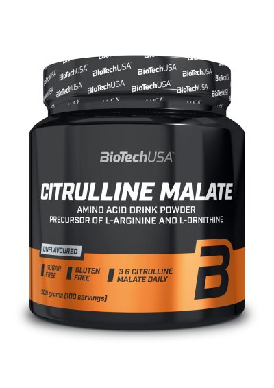 100% čistá aminokyselina L-citrulin malát v prášku. L-citrulin je neesenciální (podmíněně esenciální) aminokyselina, mikroživina, kterou tělo nedokáže produkovat v dostatečném množství, typicky při větší zátěži, a proto je na místě doplnění ve formě doplňků stravy. Pro sportovce je důležitý, protože při užití před fyzickým výkonem podporuje vlastní tvorbu oxidu dusnatého, který pomáhá s prokrvením namáhaných svalů. Citrulin se ve velkém množství vyskytuje například ve vodním melounu. Synergickou kombinací aminokyseliny L-citrulin a kyseliny jablečné je L-citrulin malát. Kyselina jablečná (malát) je organická kyselina, která se vyskytuje v přírodě (například v jablku). Aminokyselina L-citrulin je to, z čeho se skládají aminokyseliny L-arginin a L-ornitin. Jde o formuli velmi oblíbenou mezi sportovci. Doporučené dávkování: